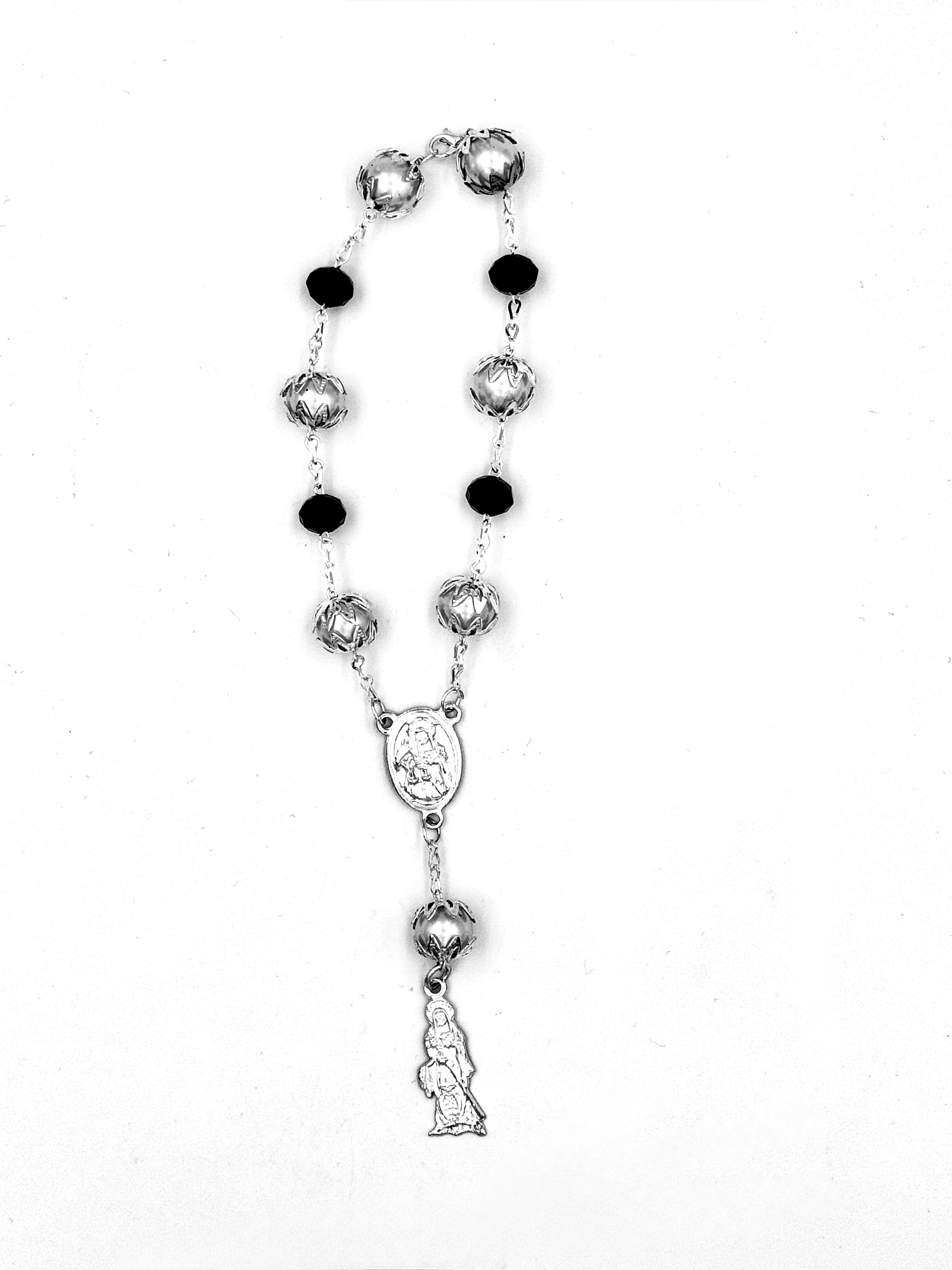 The monochrome silver and black colorway gives this rosary a quiet, utilitarian presence—well suited for altar placement, daily devotional use, or carrying. These were hand-selected in Mexico and are not mass-market novelty pieces.