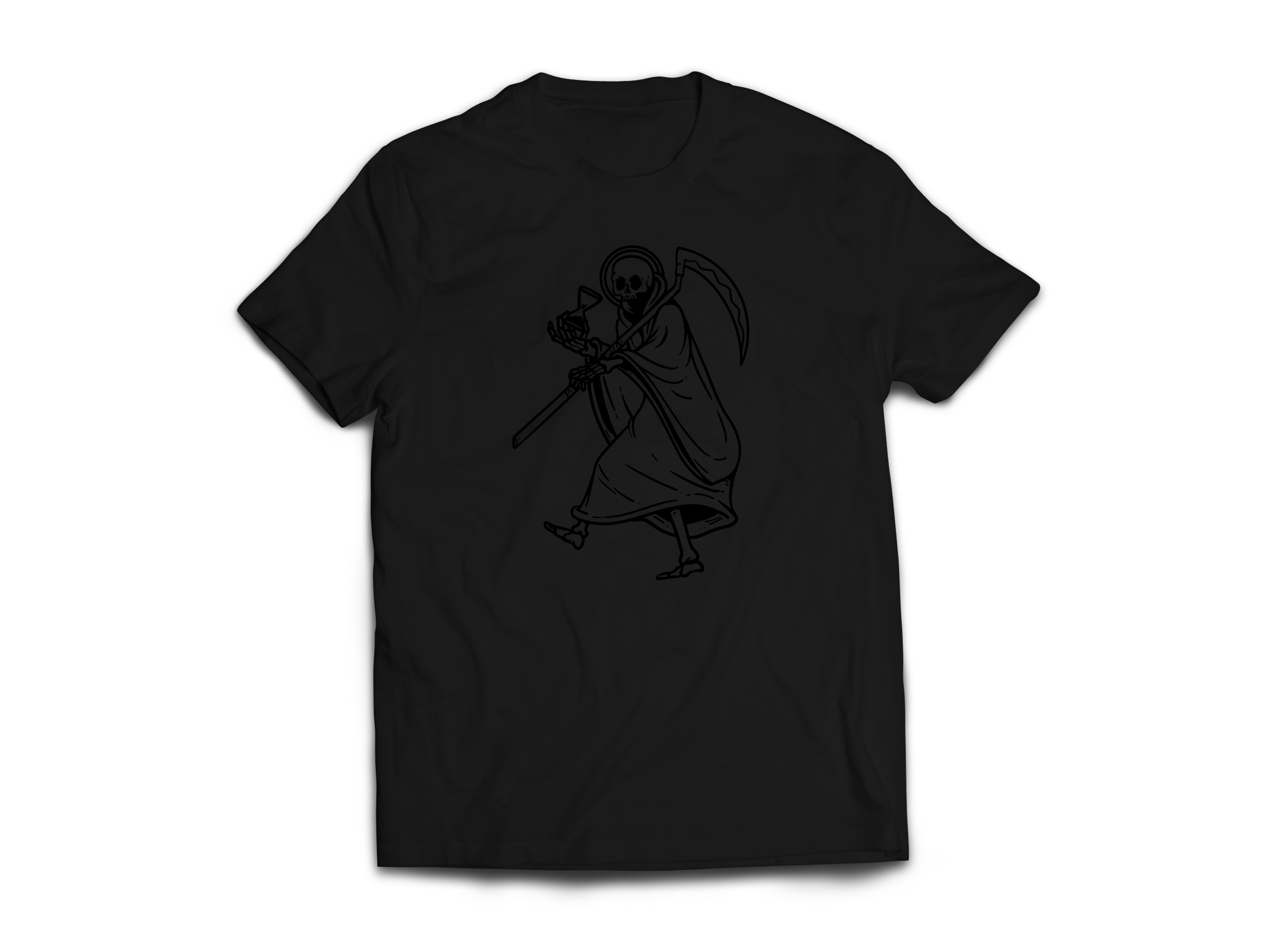 The Traveling Santa Tee from Sneakreaper Industries takes Santa Muerte on the road—scythe in hand, cloak flowing, and steps steady. This minimalist design keeps it raw and iconic, capturing the reaper mid-stride, moving through shadows with purpose.